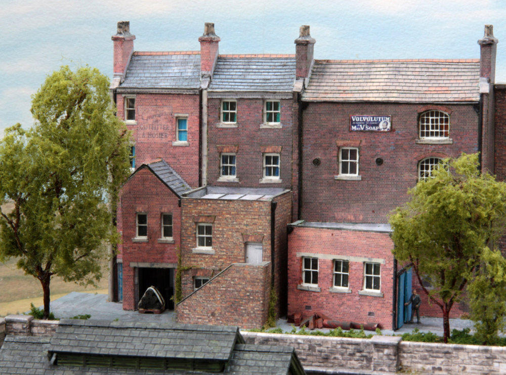 The model depicts the London Midland Scottish Railway in the period prior to the formation of British Railways in 1948, when the railways were nationalised. The model does not represent any particular location. N Gauge modelling is to a scale of 1:148 or 2mm representing a foot; so a typical two storey house is only about 2” (50mm) from ground to roof, and 100 yds can be modelled in just 3ft (100m in 70cm). This does require quite delicate and accurate modelling techniques, but the big advantage of this scale is that in the same space you can model an area four times the size that is possible in the more common OO Gauge, which is 4mm to the foot. It thus allows you to model a train running through the landscape, much more easily than with the larger scale; for example two sides of a 14ft by 6ft room, with a double track, represents over a mile of travel.