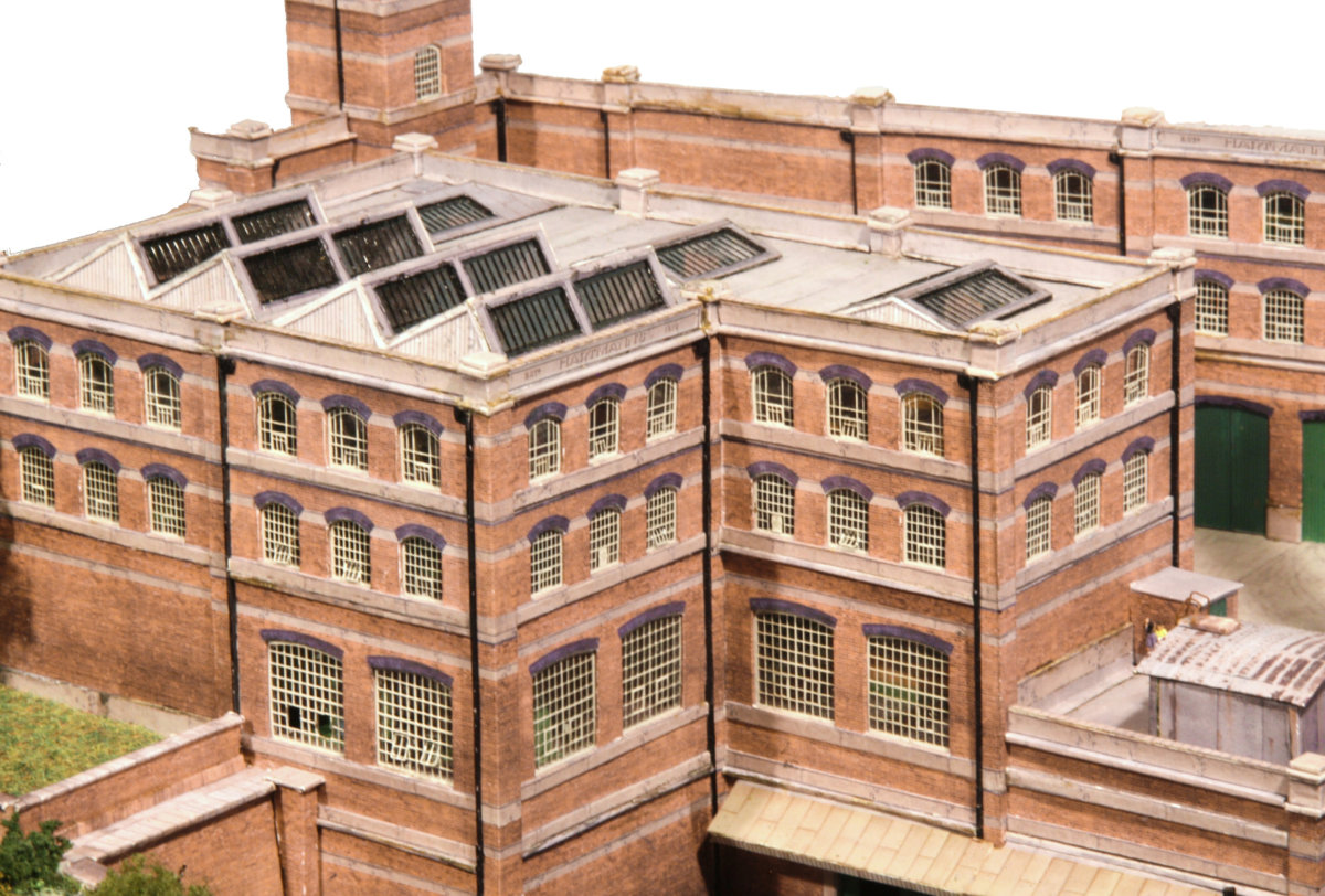 This low-relief factory building is over the hidden tracks at