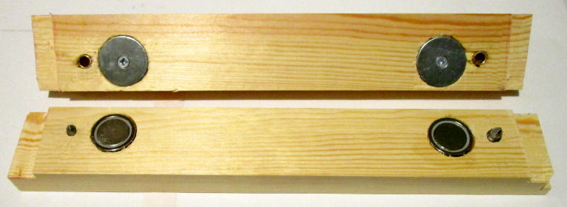 held together with two 25mm diameter magnets (22kg force) acting on 30mm